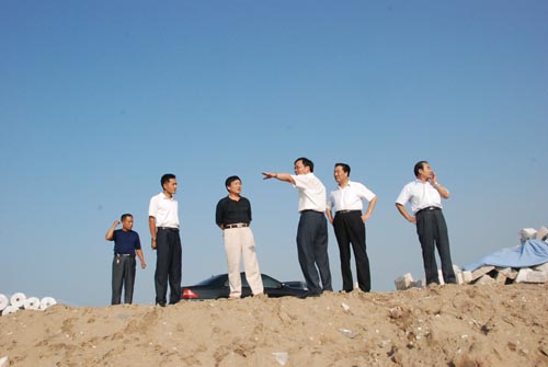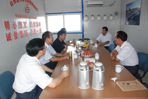 8月25日-8月27日,省局杜宪奎副局长、经济管理局任士伟局长到山东黄河工程集团有限公司各施工项目检查指导工作。在山东黄河工程集团董事长郭学鑫、副总经理马向阳的陪同下,杜局长先后查看了龙口东海明珠项目、青岛高新区防潮坝工程7标段、潍坊滨海经济开发区弥河入海口治理工程等3个工程项目,查看了工程进展情况,现场听取了工作汇报,并与项目部人员进行了座谈。
