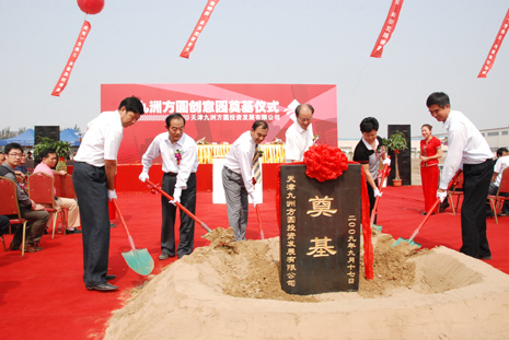 9月17日上午,由山东金河房地产公司控股兴建的天津九洲方圆创意园项目举行奠基仪式。津南区政府李广文区长、窦双菊副区长,津南经济开发区管委会王国林主任、津南区相关委办局的领导以及山东黄河工程集团有限公司郭学鑫董事长出席了奠基仪式。