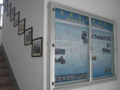 金河公司自2005年成立至今,已走过4个春秋。为了更好的宣传企业文化精神,让员工更加了解企业发展历程,增强员工主人翁意识,金河公司将四年来的风风雨雨化作一幅幅珍贵的照片,张贴在楼梯两侧,形成了独特的文化长廊。