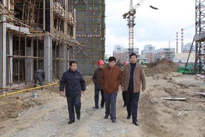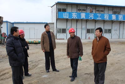 12月15日下午,在金河公司高景强总经理、孙继铮副总经理的陪同下,集团公司张庆国副总经理来到龙口·东海明珠工程施工现场检查指导工作。