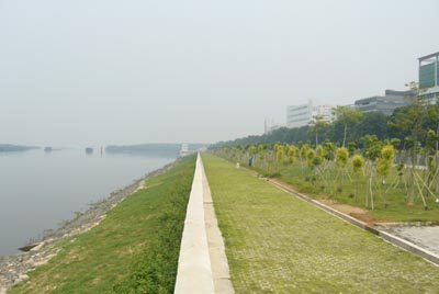 深圳河河口治理一期工程I标段位于深圳河河口北岸,深圳市福田保税区内,河对岸为香港特别行政区的自然保护区。工程全长870米,主要是通过挖除福田保税区填河造地部分面积,局部恢复河口喇叭状原貌,使深圳河干流防洪治理工程中防洪标准不会因河口过流断面缩窄而降低。主要工程包括河道工程、重配工程、执勤码头及边防工作室。在工程建设中,山东黄河工程集团参建人员充分发扬“黄河铁军”精神,顺利实现了各项节点目标,得到了业主和监理单位的好评。