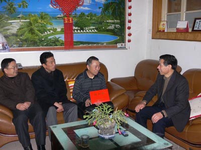 1月20日,山东省总工会经审委主任宫祥宏在山东黄河工会副主席王伟、山东黄河工程集团党委副书记董秀生的陪同下,来到山东黄河工程集团第一工处全福庄宿舍,看望慰问了两位困难职工,并送去了慰问金和慰问品。