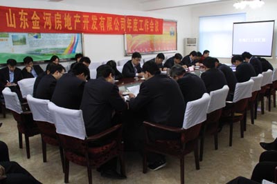 2月24日,山东金河房地产开发有限公司召开2010年工作会议,会议由公司副总经理孙继铮主持,全体员工参加。