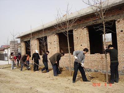 上午9时,第二工程处机关30余人手持锹、镐,开始了热火朝天的植树活动。植树现场气氛浓烈,大家挥锄挖土,栽树浇水。现场一派开疆拓土的豪情,欢声笑语洒满院落。在干部员工的齐心协力下,一株株银杏树、冬枣树挺立在新建院墙两侧。