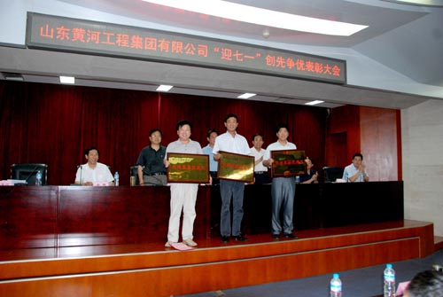 为表彰先进,树立榜样,弘扬正气,促进和谐,6月22日下午,山东黄河工程集团有限公司组织召开了“迎七一”创先争优表彰大会,集团公司副总经理赵洪林主持会议,全体共产党员共100余人参加了会议。