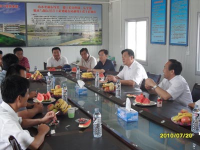 7月20日,山东黄河河务局巡视员郝金之同志带领防汛办公室和水政处有关人员到南水北调东线一期工程邓楼泵站枢纽工程检查指导工作。