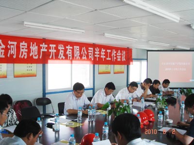 8月2日上午,山东金河房地产开发有限公司半年工作会议在天津九洲创意园项目部现场会议室召开。公司中层以上领导干部及天津项目部全体人员参加了会议。