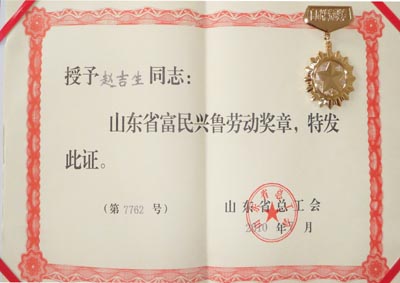 日前,第一工程处被山东省总工会授予“富民兴鲁劳动奖状”。同时,第一工程处主任赵吉生被授予“富民兴鲁劳动奖章”。