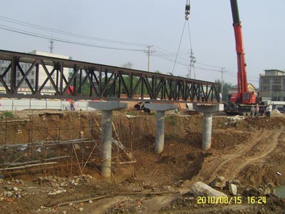 第一工程处承接的济南市腊山分洪工程二环西路桥工程,新建电力管桥钢桁架整体吊装于8月15日完成,该电力管桥钢桁架总长度 31.21m,高度2.34m,宽度2.76m,重量约30T。
