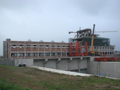 二级坝泵站副厂房为钢筋混凝土框架结构,地下1层,地上6层,总高度25.2m,其中包括电缆层、设备层、中控室、会议室等。自2010年2月中旬开始施工至2010年8月中旬完工,历时6个月。