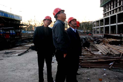 11月8日,山东黄河工程集团有限公司郭学鑫董事长来到金河房地产开发公司负责开发的天津“九洲之地”施工现场及售楼处,检查指导房地产开发工作。