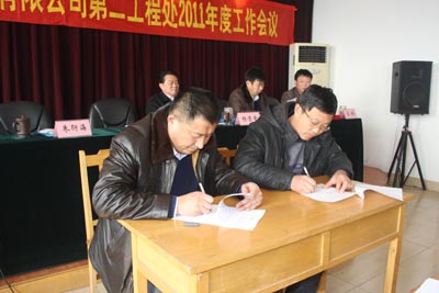为全面贯彻集团公司2011年度工作会议精神,推进第二工程处经济又好又快发展,2月14日上午,第二工程处召开了2011年度工作会议,处领导班子及全体职工参加了会议。