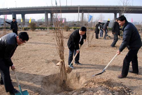 在植树之前,集团公司党委副书记董秀生做了重要讲话,向大家介绍了植树的程序、步骤及要领,提出了注意事项,就与大家一起热火朝天地干了起来。全体人员个个干劲十足,挖坑、放树、填土、浇水各个环节井然有序,经过大家的共同努力,近100株树苗全部栽种完毕。党委委员秦汝增也与大家一起参加了植树活动。