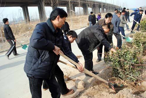 又是一年春暖时,阳春三月把树植。3月11日,由山东黄河工程集团团委组织的“植树节”劳动顺利在疏浚工程处庭院内外开展,根据“党建带团建”的要求,这次植树活动得到了集团公司党委的大力支持,共发动直属单位及机关全体团员及部分党员共计100余人参加了植树活动。