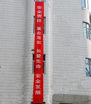 悬挂宣传横幅 |