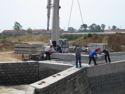 6月23日国核压水堆示范电站道路工程顺利完成了桥板吊装及池塘填筑两节点的施工。
