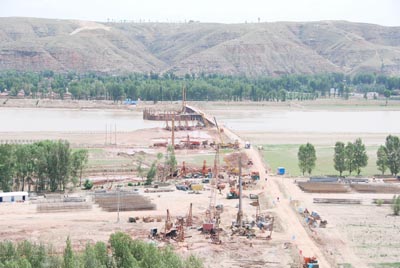 正在施工的内蒙柳林滩黄河特大桥