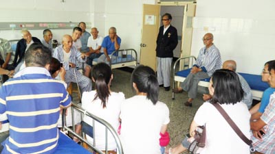 6月29 日,在建党90周年来临之际,山东黄河工程集团团委组织青年团员,手捧鲜花来到山东省荣军总医院,慰问在此疗养的老红军战士,与他们共庆党的节日。