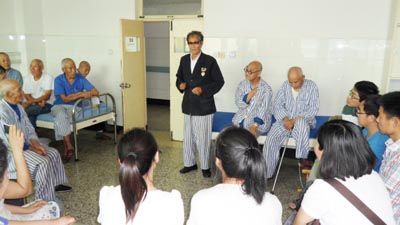 荣军总医院创建于1946年华东战场,是山东省民政厅直属的一所综合性二级甲等优抚医院,在这里疗养的老人都是参加过抗日战争、解放战争及朝鲜战争的老红军、老八路、老英雄模范人物。集团公司的团员青年们与老同志们亲切地攀谈,老红军们娓娓讲述起那段血泪交织的战争岁月。当团员青年们说起他们是国家的开国功臣、是英雄时,老人们脸上都洋溢着自豪与骄傲。