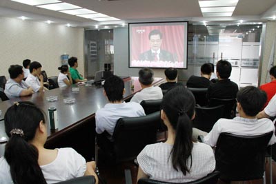 7月1日上午,金河党支部组织在济全体员工集体观看了“庆祝中国共产党成立90周年大会”网络直播。