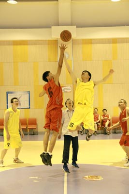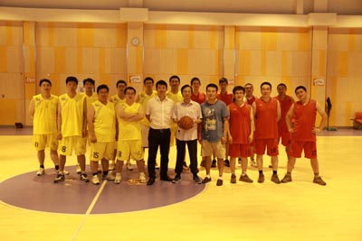 7月8日下午,金河房地产公司和恒润投资公司举行了一场男子篮球友谊赛。