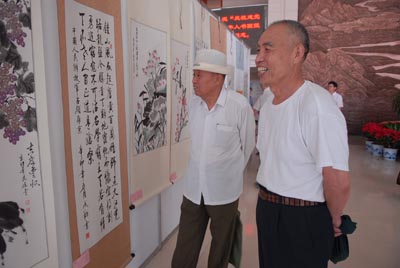 7月13日,山东黄河工程集团组织离退休老同志参观庆祝建党90周年山东黄河老年人书画摄影展。