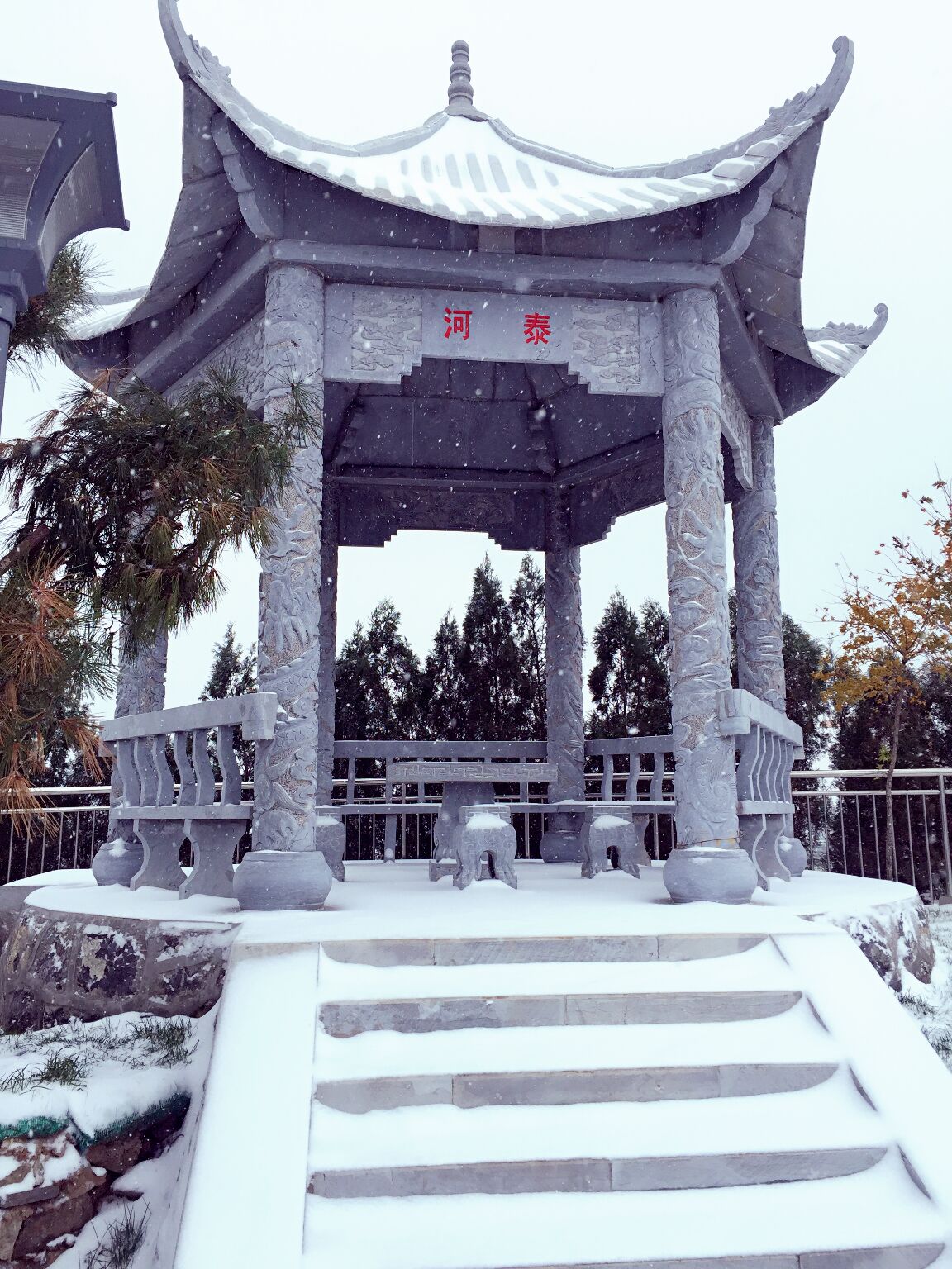 自从调到河泰山庄项目部工作之后,上班的路变得近了不只一点点,坐在温暖的办公室泡上一杯热茶,白色的热气飘袅着,窗外的雪花就这样飘飘洒洒的钻进了我的心里,这会儿无论如何也是坐不住了,挎上相机直奔河泰山庄而去。这种天气开车是会煞了风景的,徒步走在小区里,雪中的它们变得格外动人。沿着河泰山庄路标的指引,展板上小区的效果图越发的逼真了起来。不远处一块红色牌子上“河泰*优山美郡山体公园入口”映入眼帘。拾级而上,苍翠的松柏顶着白白的帽子簇拥着我,脚步也变得轻快了许多。记得前几日,因为工作顶着秋雨来的时候他们并不是这么俏皮的样子,那时的他们挺拔而苍翠,烟雨缭绕着若仙境一般。今日登顶而观,确是另外一番模样,银装素裹,娇俏可人,犹如待嫁的姑娘,摇曳着动人的腰肢,娇羞却又内心激动澎湃。站在观景台向下望去,远处的金河山庄安静的立在那里,红墙灰顶,平整的道路边几步一座小亭,亭顶已覆上薄薄的白雪,亭内有老人拿着茶杯话着家常。亭外有几个未到学龄的孩子快乐的嬉笑着玩耍着,无邪的笑容挂在脸上,温暖了我,不由得便跟着笑了。